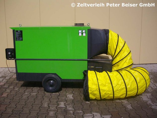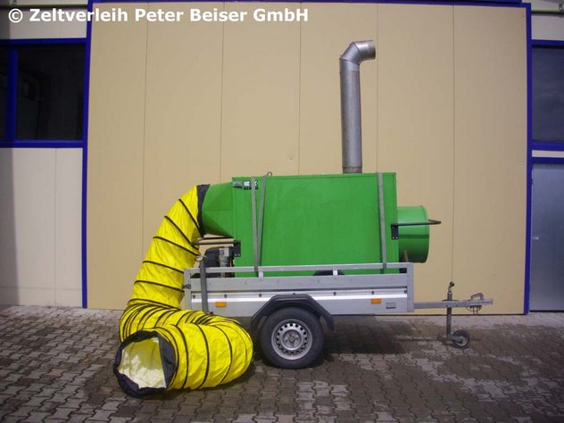 Wahlweise lose oder fix auf PKW-Anhänger montiert. Alle Heizungen mit separater Abgas-Führung. Auf Wunsch mit gelochtem Warmluftschlauch zur Warmluftverteilung im Zelt
