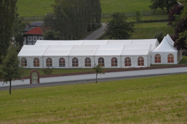 Auch die Kombination mehrerer Zelte (Trennung Küche / Bar / Festzeltbereich) ist durch die Kombinationslösungen (Regenrinnen usw.) jederzeit möglich.